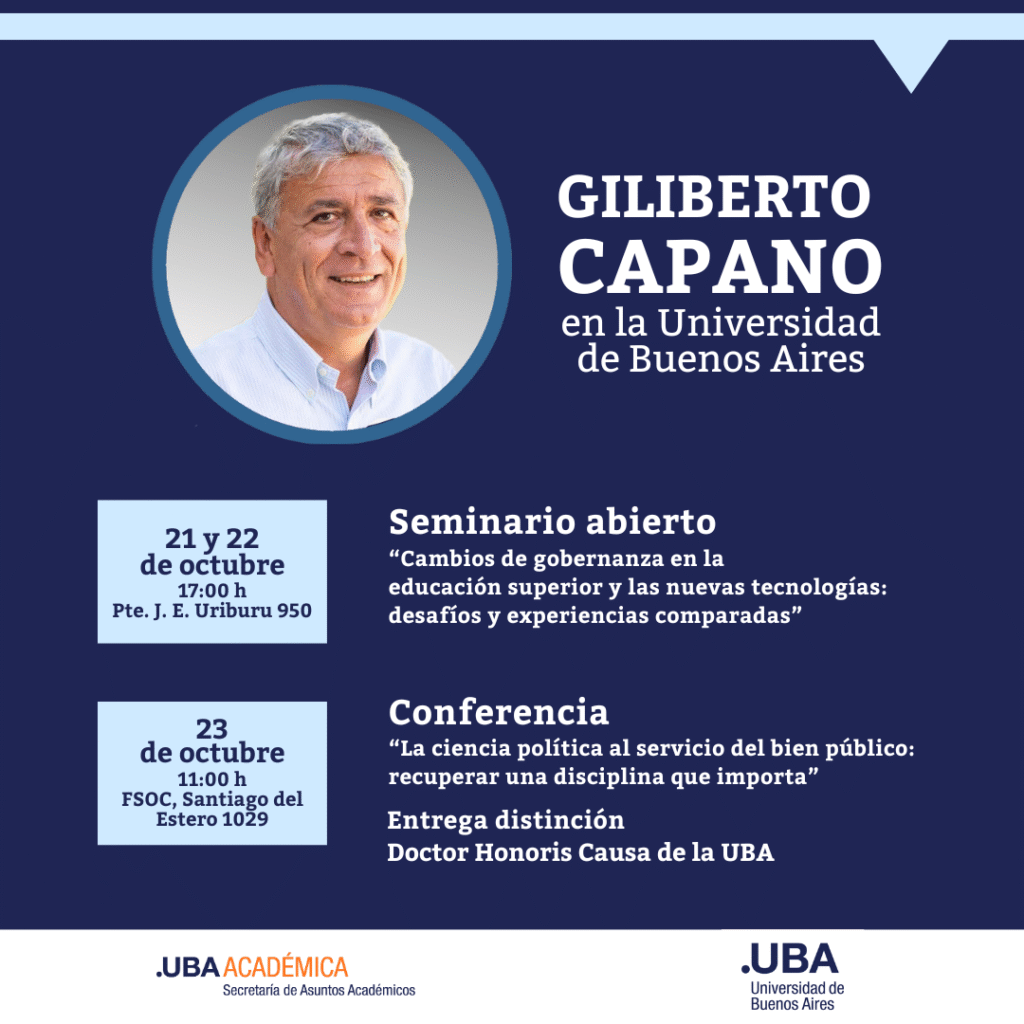 Participan investigadores y referentes internacionales como Daniel Innerarity y Giliberto Capano, quien presenta su conferencia “Convergencia y diversidad en la gobernanza de la educación superior”. El ciclo se completa con el panel “Gobierno digital en la universidad pública”, a cargo de María Catalina Nosiglia y Santiago Rotman, quienes proponen una mirada situada sobre los desafíos actuales del gobierno universitario.